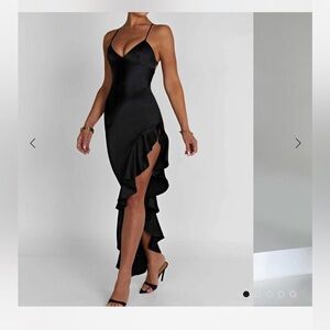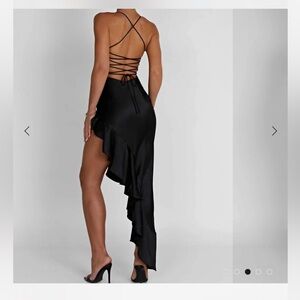 This elegant black high low dress is perfect for any occasion. Its sleek design and flowing hemline offer a sophisticated look. Ideal for evening events or a night out.