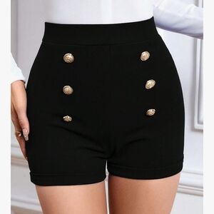 Step out in style with these elegant black high-waisted shorts. Adorned with striking gold button accents, they are perfect for any occasion. NWOT AND IN EXCELLENT CONDITION!