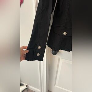 Chic black jacket featuring stylish silver buttons. Ideal for versatile wear.