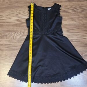 This elegant black dress features delicate lace detailing, perfect for a tea party! Size 7, by Rare Editions.