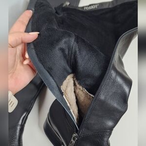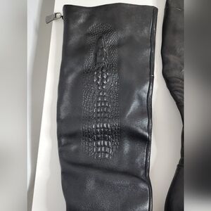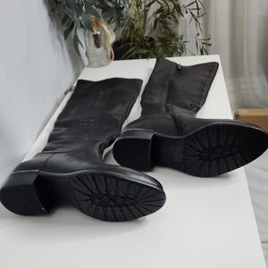 Step out in style with these elegant black knee-high boots. Perfect for any occasion, these boots offer both comfort and sophistication.