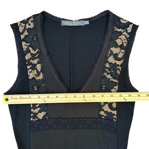 This elegant black dress features intricate lace detailing with a nude undertone. It is SO cute on and so classy looking.
