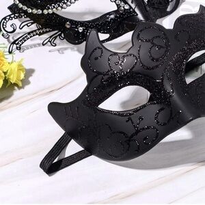 Step into elegance with this stunning black lace masquerade face mask. Perfect for adding a touch of mystery to any event.