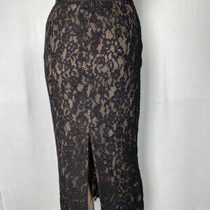 This elegant black lace midi skirt is perfect for any occasion. Its intricate lace design adds a touch of sophistication to your wardrobe.
