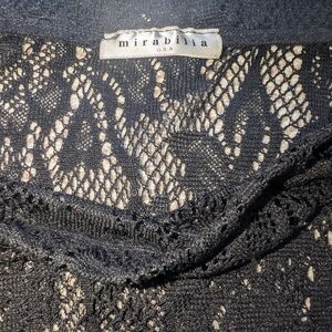 This elegant black lace top features an off-shoulder design, perfect for a night out. The intricate lace pattern adds a touch of sophistication to your wardrobe.