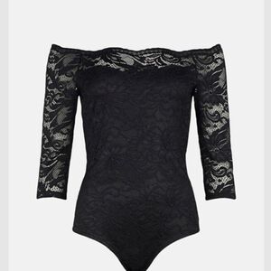 Elegant Black Lace Off-Shoulder Top Bodysuit