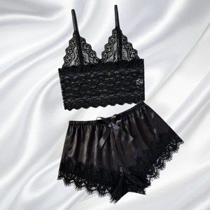 Elegant Black Lace Pajama Set