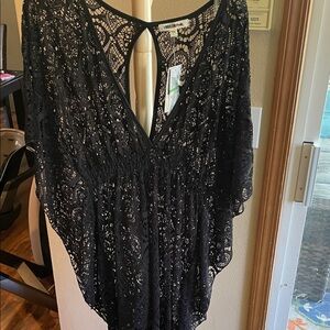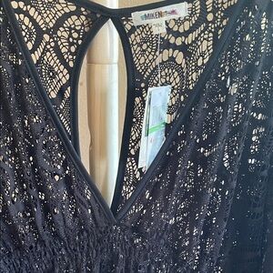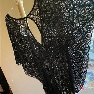 Black crochet swim coverup. Ruching around waist has a good amount of stretch. Size large.