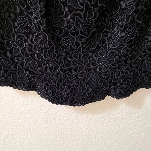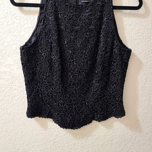 This is a elegant Carmen Marc Valvo black thick embroidered, beaded, sequins top with back zip closure. Perfect for holiday parties, dinner dates, and any special occassion. Its intricate design adds a touch of sophistication to your wardrobe. Good pre-owned condition. Length 20" Armpit to Armpit 16". Sequins, embroidered, beaded, Carmon Marc Valvo top, Elegant.