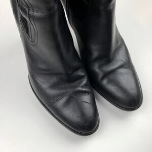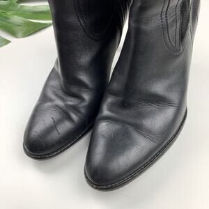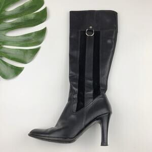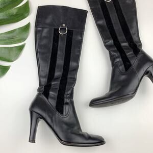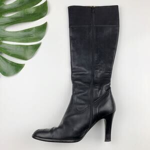 Step out in style with these elegant black leather knee-high boots. Perfect for any occasion, these boots offer both comfort and sophistication.
