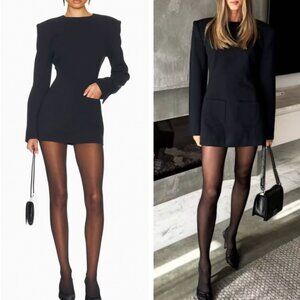 Step out in style with this elegant black mini dress. Perfect for any occasion, its sleek design and long sleeves offer a chic and modern look.