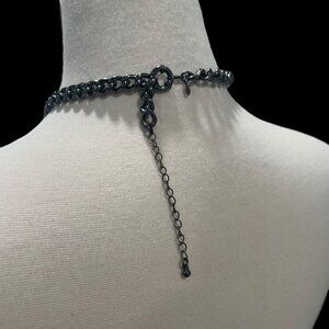 Elegant Black Metal Statement Necklace Gemstone Design Bold Glam Sophisticated