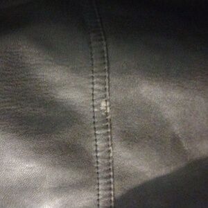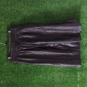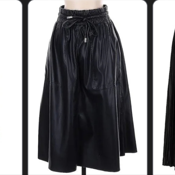 This elegant black midi skirt is perfect for any occasion. Its sleek design offers a sophisticated look. Pair it with your favorite top for a chic ensemble. it do have some peeling to the back pocket see pictures for detail pre-owned as is