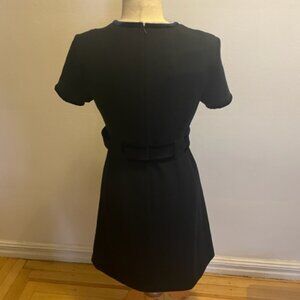 This elegant black mini dress features a classic design with button details, perfect for any occasion. Its sleek silhouette offers a timeless look.