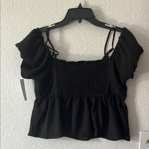 Chic and stylish, this black off-shoulder top is perfect for any occasion. Its elegant design offers a flattering fit.