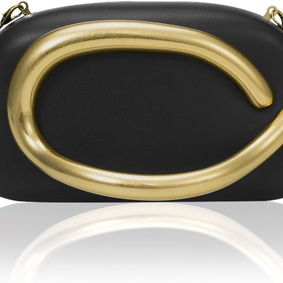 Elegant Black PU Leather Women's Evening Clutch Crossbody Bag with Gold Handle a