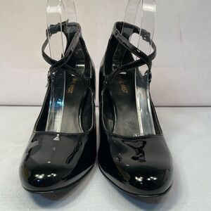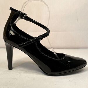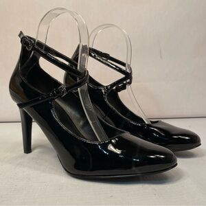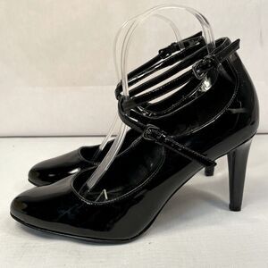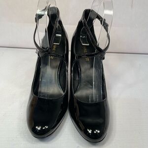 Elegant Black Patent Leather Women's Ankle Strap Heels by Nine West size 8.5 EUC