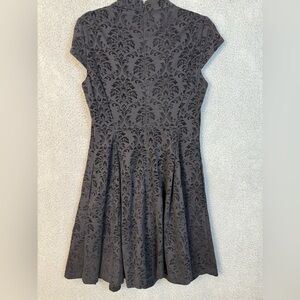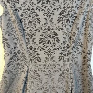 This elegant black dress features a sophisticated pattern, perfect party dress. Its timeless design ensures you stand out with style and grace.velvet damask pattern excellent preowned condition