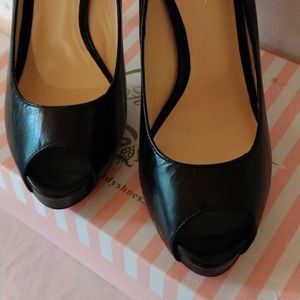 Step out in style with these elegant black peep-toe heels. Perfect for any occasion, these shoes offer both comfort and sophistication.