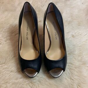 Step out in style with these elegant black peep-toe heels. Perfect for any occasion, they offer both comfort and sophistication.