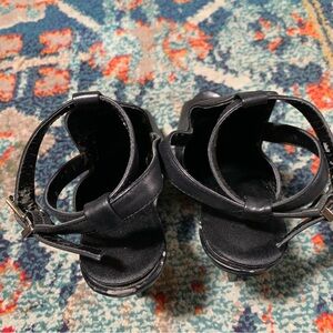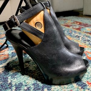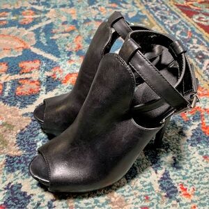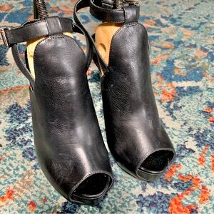 Step out in style with these elegant black peep-toe shoes. Perfect for any occasion, they offer both comfort and sophistication.