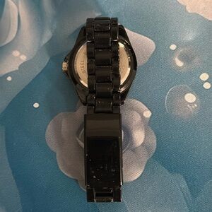 Stylish black watch with crystal accents. Quartz movement. Perfect for any occasion.
