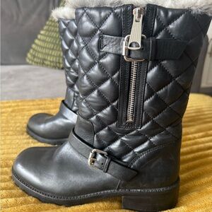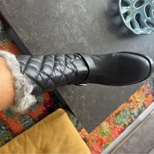 Stay warm and stylish with these elegant black quilted winter boots. Featuring a chic design and durable construction, they are perfect for cold weather.