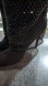 Step out in style with these stunning black rhinestone knee-high boots. Perfect for adding a touch of glamour to any outfit.