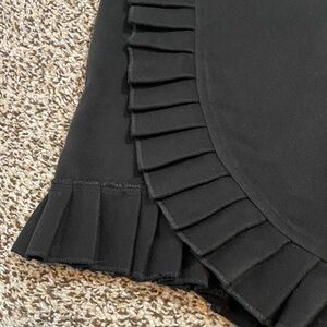 This elegant black shawl features a stylish ruffled design, perfect for adding a touch of sophistication to any outfit. Ideal for both casual and formal occasions. Excellent condition.