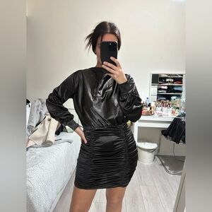 Step out in style with this elegant black satin dress. Perfect for any occasion, this dress offers a sleek and sophisticated look.