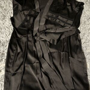 Luxurious black satin robe with a sleek design. Perfect for lounging in style.