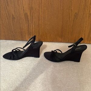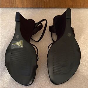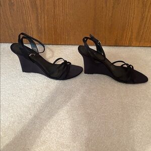 Elegant Black Satin Wedge Jacqueline Ferrar Strappy Sandals Size 9 NEW WITH BOX