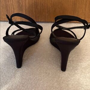 Step out in style with these elegant black strappy sandals. Perfect for any occasion, these shoes offer both comfort and sophistication.