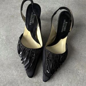 Elevate your look with these stunning black sequin heels by . Perfect for any occasion, these heels add a touch of glamour to your outfit.