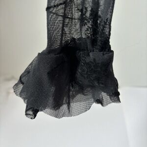 Chic black sheer crop top with long sleeves. Perfect for a stylish look. Black floral mesh crop top blouse with square neck off shoulder design and ruffled sleeves.