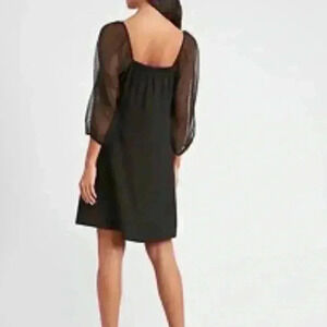 This elegant black dress features stylish sheer sleeves, perfect for any occasion. Elevate your wardrobe with this chic and versatile piece.