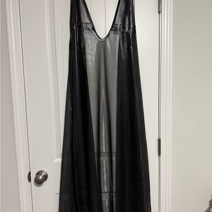 This elegant black sheer swim coverup is perfect for adding a touch of sophistication to your beachwear. Lightweight and stylish, it's a must-have for any summer wardrobe.