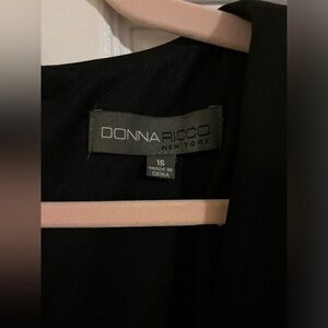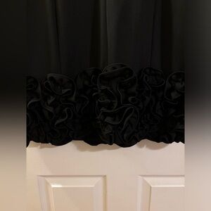 This elegant black sleeveless dress is perfect for any occasion. Its classic design and comfortable fit make it a wardrobe essential. V neck, zipper back ruffles at the bottom.