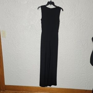 This elegant black sleeveless jumpsuit is perfect for any occasion. Its sleek design offers a timeless look that is both stylish and versatile.