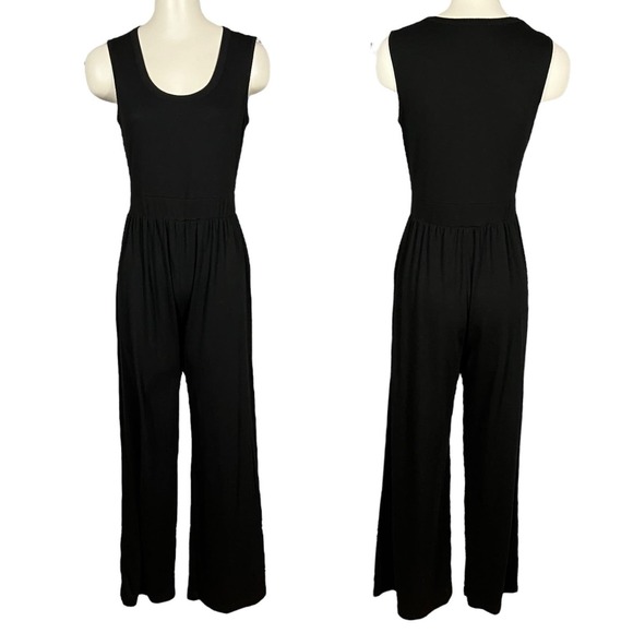 Step out in style with this elegant black sleeveless jumpsuit. Perfect for any occasion, it offers a sleek and comfortable fit.