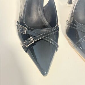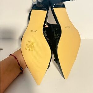 Step out in style with these elegant black slingback heels. Perfect for any occasion, these shoes offer both comfort and sophistication.