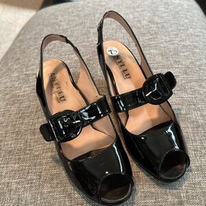 Step out in style with these elegant black slingback heels. Perfect for any occasion, these shoes offer both comfort and sophistication.
