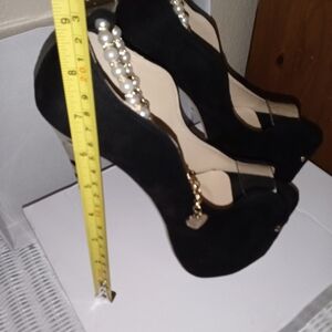 (BRAND NEW )Step out in style with these elegant black stiletto heels. Featuring chic gold accents and a sophisticated design, these shoes are perfect for any occasion.Women's Platform Slip On High Heels Round Toe Stiletto Heel Ankle Strap Pumps Platform Pump Shoes Boho Sexy Casual 6.3" High Heel Sandals for Night Club Party Hot Girls (Color : Black Pearl, Size :