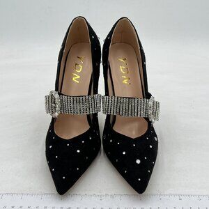 Step out in style with these elegant black stiletto heels. Featuring dazzling rhinestone accents, these shoes are perfect for any special occasion. Elevate your look with sophistication and glamour.