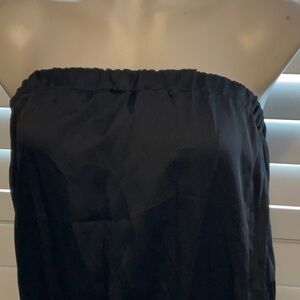 This elegant black strapless blouse is perfect for any occasion. Its sleek design offers a sophisticated look, making it a versatile addition to your wardrobe.