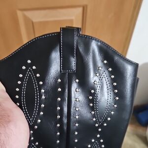 Step out in style with these elegant black studded over the knee boots. Perfect for adding a touch of sophistication to any outfit.
