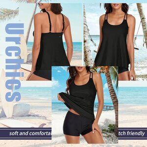 Elegant Black Tankini with Comfortable Boyshorts — Perfect for any water adventure with style and coverage.