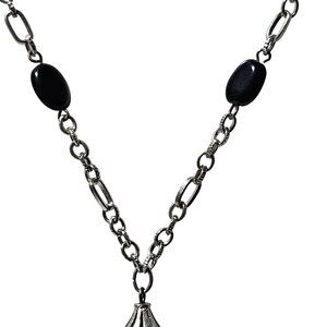 A stylish necklace featuring a black beaded and silver chain tassel pendant. Ideal for adding sophistication to both formal and casual ensembles.