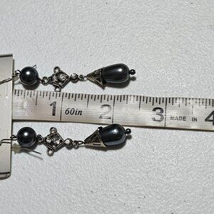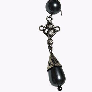 Elegant Black Teardrop Dangle Earrings Silver Tone Faux Diamonds Fashion Jewelry