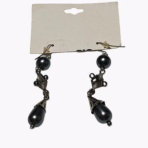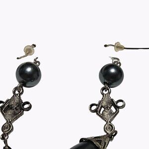 These Social Scene earrings feature a striking dangle design with black beads and rhinestone accents. Lightweight for comfortable wear.